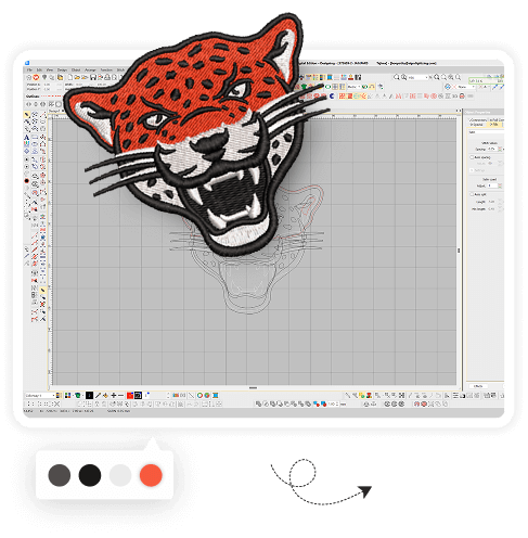 The design is carefully digitized using advanced embroidery software, following exact specifications for stitch type, density, and flow.