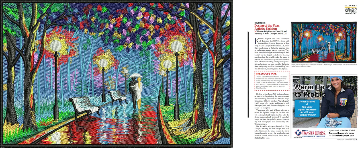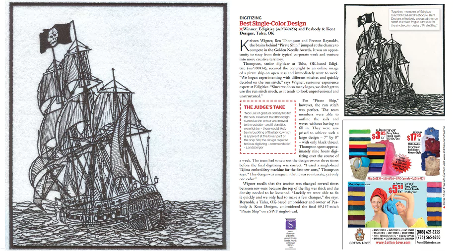 Each of these 10 award-winning designs is an innovative and unique masterpiece stitched in thread. Every award proves our team’s dedication to pushing the limits of embroidery by turning simple ideas into standout art.